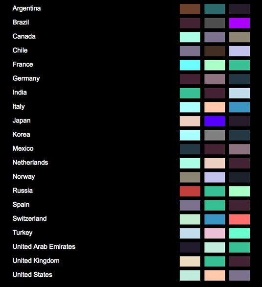 بر مبنای تصاویر دانلود شده از خدمات دهندگان سراسر دنیا، به گفته Shutterstock این چهار رنگ بیشترین محبوبیت را در سال 2015 داشتهاند: